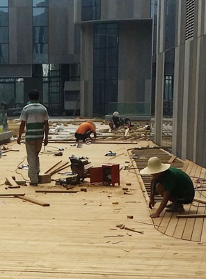 木質座椅打造一片休憩的空間,布藝的抱枕,溫馨的燈光,給人內心充盈的舒適和溫暖感覺!置身其中,放松心情,整個人都沉靜下來!自家若有個大庭院,木平臺的規(guī)劃讓花園更具人文氣息,木地板、木柵欄、木樓梯、木亭廊……起到藝術的裝飾作用,同時布置一些照明燈具,夜晚的庭院更顯沉穩(wěn)和品味。 防腐木產(chǎn)品誰來施工? 庭院剛施工完成,柳岸木的葡萄架開裂了?  開車去現(xiàn)場看了一下,做好的葡萄架木質很松、裂口很大,可以確定開裂的原因:用的不是柳桉而是松木的一種,但是具體是哪一類松木也分辨不出來,裂縫產(chǎn)生主要原因是木頭沒有烘干,含的水分很多,經(jīng)過風吹日曬,木頭中的水分蒸發(fā)發(fā)生收縮變形而產(chǎn)生裂縫,把木頭換掉基本是不可能了,唯一的解決辦法就是等裂縫穩(wěn)定以后用膩子填滿重新做油漆?! ∈虑榻鉀Q了,正好業(yè)主也在,就問他簡單溝通了下,了解了一下情況,幫他做花園的是找上門來的一個施工隊,柳桉防腐木地板3公分厚280元/平方,葡萄架報價500元/平方,就業(yè)主算了一筆賬,正宗柳桉木現(xiàn)在市場價按5000元一立方計算,不算損耗,一立方可以做33個平方地板,每平方是150元,木工安裝費市場行情是60元/平方,油漆30元/平方,加上地板下的木楞50元/平方加起來就是290元/平方,再加上損耗和正常的公司利潤,280元/平方的柳桉防腐木地板怎么能做的出來呢